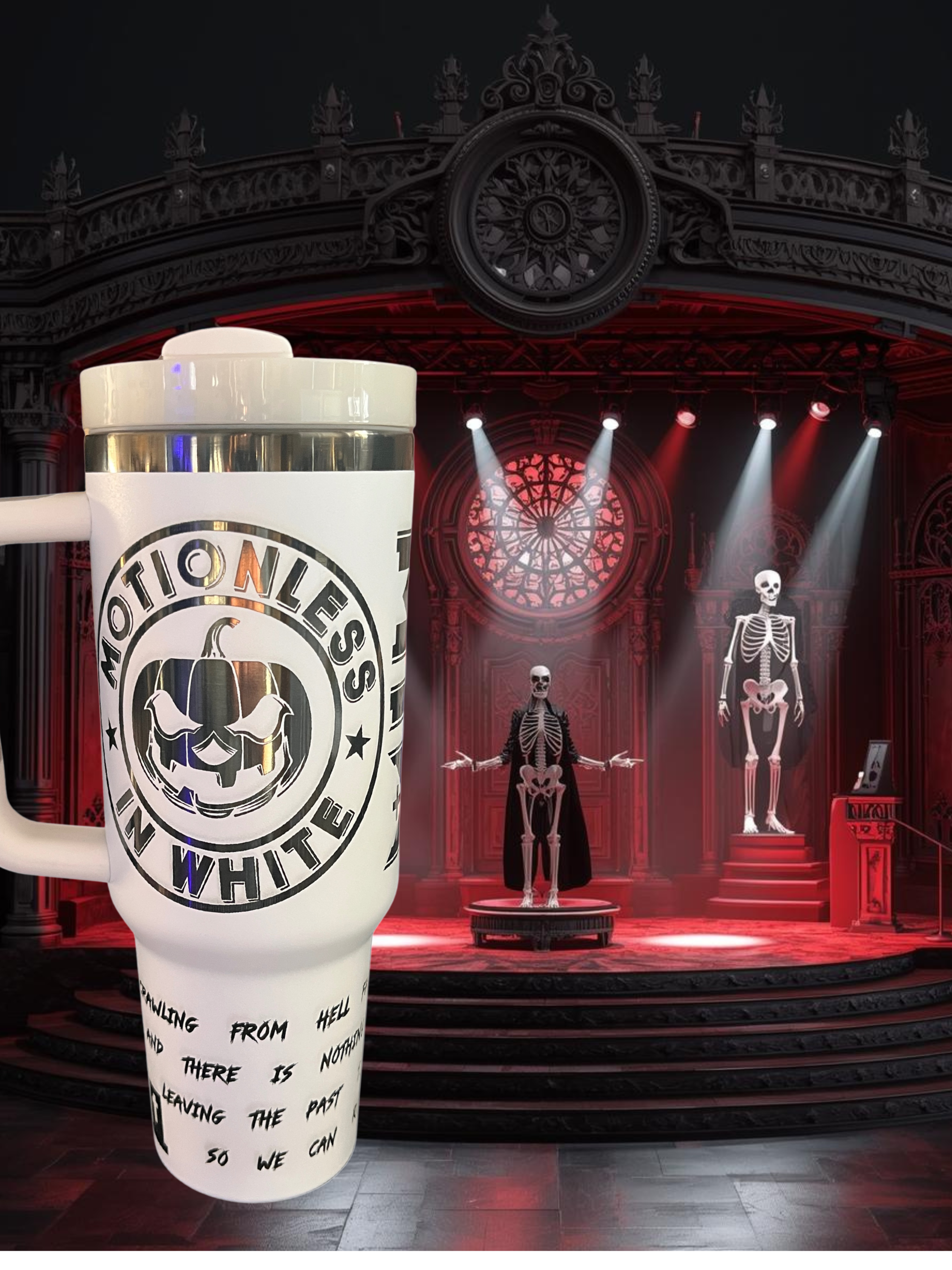 40oz Motionless In White Band Tumbler - Custom Design with Logo and Song Lyrics