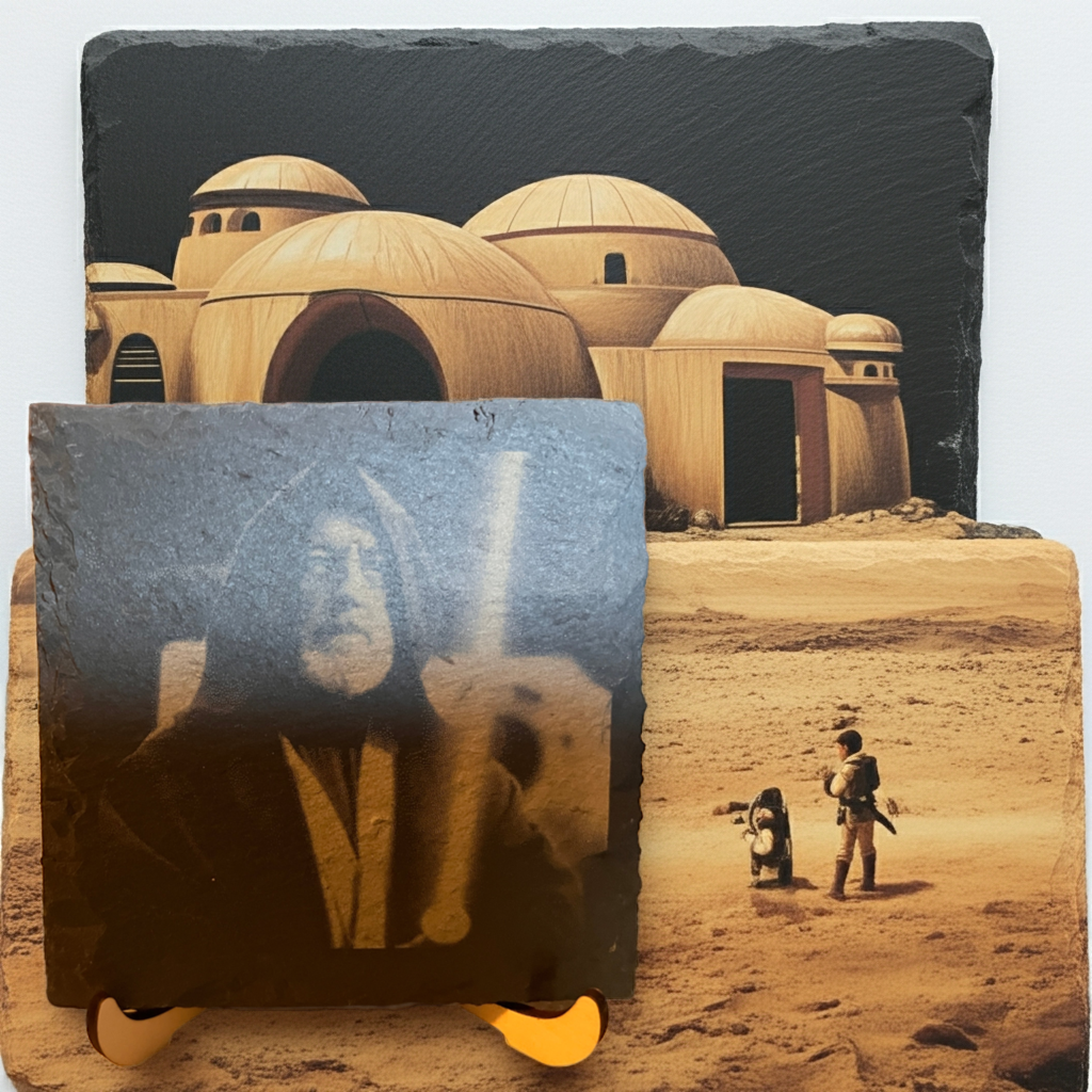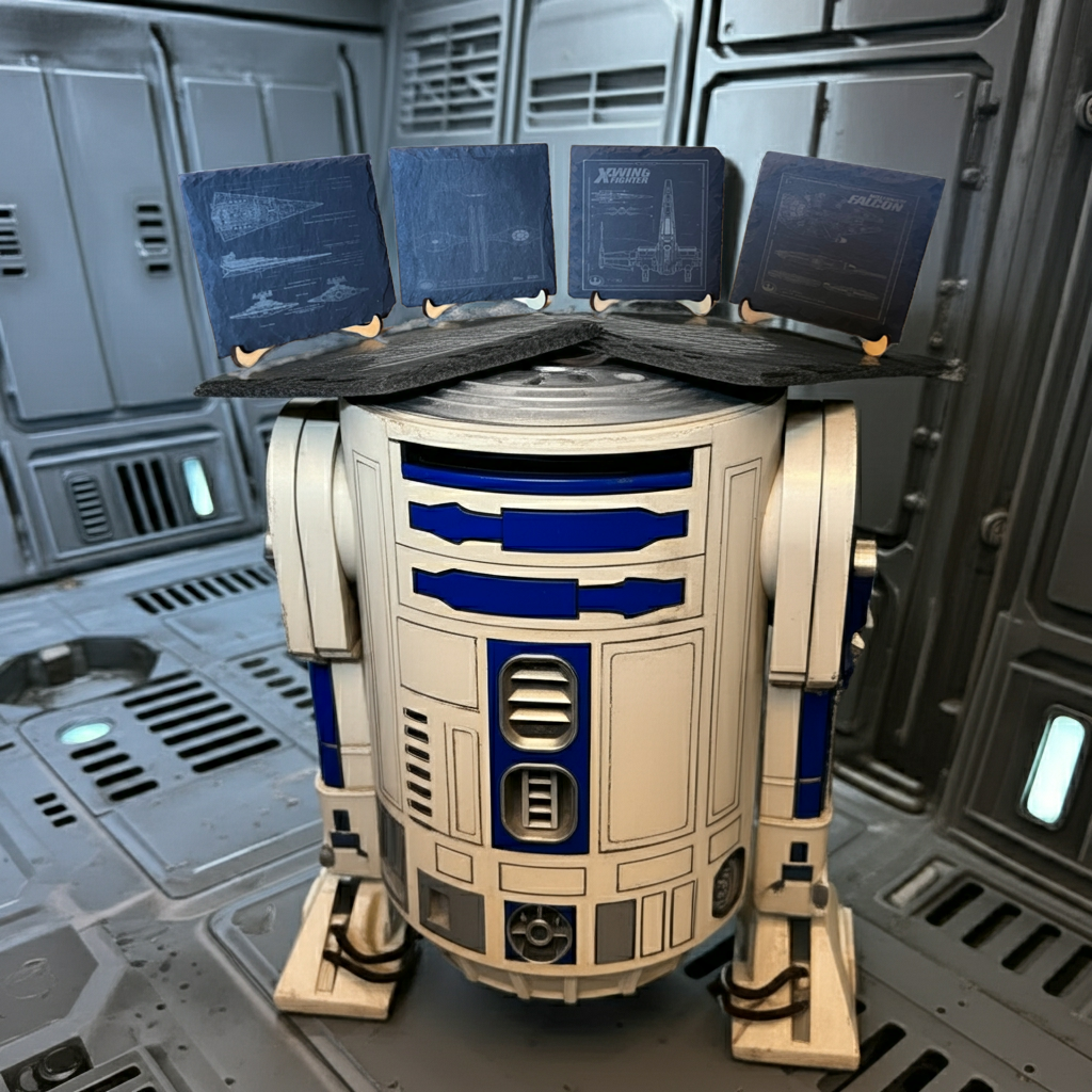 Starwars Coaster set Stylish Slate Coaster Sets: Star Wars Characters or Iconic Ship Blueprints - Perfect for Fans!